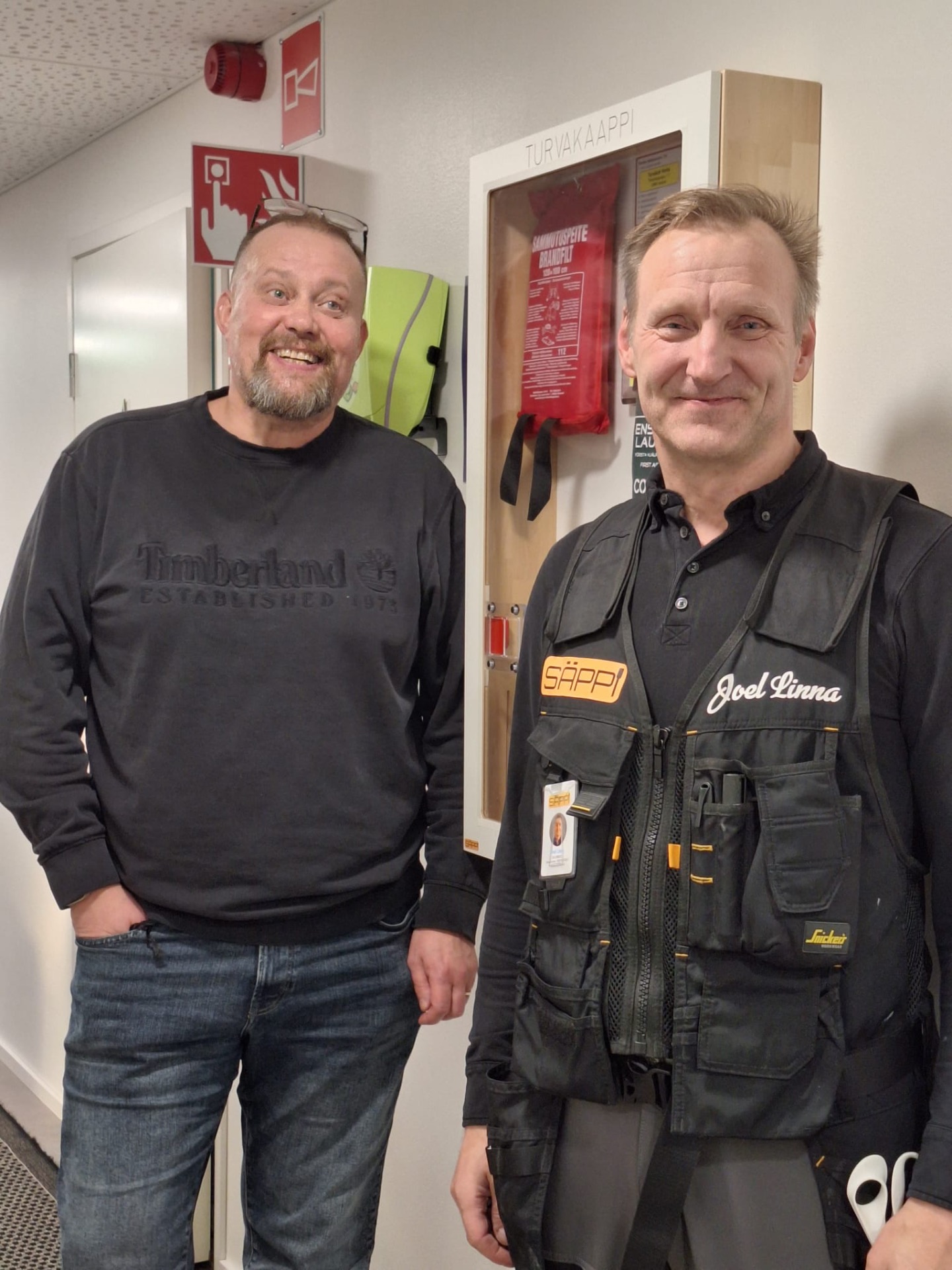 Asiakkaiden ensireaktioita asennuksen yhteydessä 11.11.2025 🙂. Kuopion Woodi Oy on onnistunut hienosti tämän turvallisuuskulttuuria edistävän kalusteen viimeistelyssä.